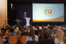 Im Rahmen ihres 50-jährigen Jubiläumsschuljahres öffnete die Konrad-Biesalski-Schule (KBS) ihre Türen für einen Fachtag, der über 350 Lehrkräfte und Fachlehrkräfte für Sonderpädagogik zusammenbrachte. Der Fachtag startete mit einem lebendigen und gleichzeitig fordernden Impulsvortrag von Dr. Sophia Falkenstörfer, Professorin und Inhaberin des Lehrstuhls für Körperbehindertenpädagogik an der Julius-Maximilians-Universität Würzburg. Sie erörterte die Frage, ob man allen Schüler und Schülerinnen wirklich alles lehren kann und wie dies gelingen könnte. Falkenstörfer berichtete zu Beginn von ihren eigenen Erfahrungen in ihrer Zeit als Sonderschullehrerin an verschiedenen Sonderpädagogischen Bildungs- und Beratungszentren im Bundesgebiet. Provokativ und anhand durchaus kritischer Fallbeispiele wie dem „Morgenkreis“ ermutigte sie die Teilnehmenden, über eigene, tradierte Arbeitsweisen hinauszudenken und mögliche selbstgewählte Komfortzonen zu verlassen. Die Botschaft war dabei klar: Sonderpädagogischer Unterricht muss breit gefächerte Lernimpulse einbringen und sollte von den Möglichkeiten, nicht von den Defiziten geleitet sein – und zwar unabhängig von der Art und Schwere der Beeinträchtigung.