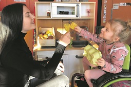 Die drei FSJlerinnen im Schulkindergarten Offenburg unterstützen bei der Pflege und begleiten die Kinder beim Spielen und Lernen. „Es ist schön, die Fortschritte der Kinder mitzuerleben“, findet Isabella Sauer. „Entwicklungen, die für viele Kinder selbstverständlich sind, sind für Kinder mit Beeinträchtigungen oft ein großer Fortschritt“, erzählt die 18-Jährige. „Und sie haben trotz ihrer Einschränkungen so viel Spaß an dem, was sie tun – da gibt es keine Unterschiede“, ergänzt ihre Kollegin Malena Zapf. „Bei dieser Arbeit lernt man, die kleinen Dinge zu schätzen.“